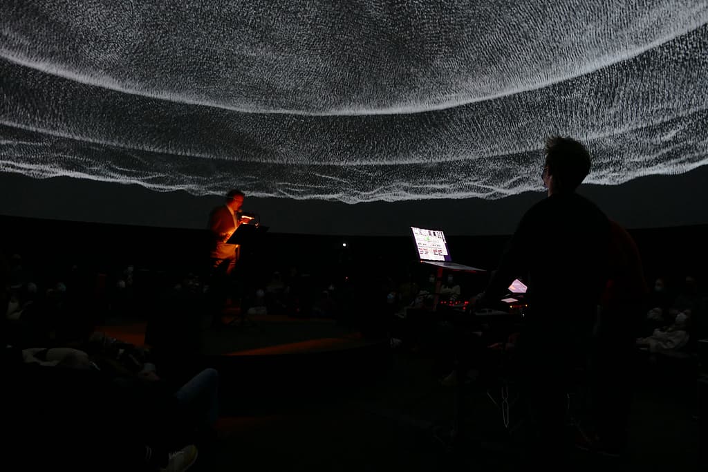 The concert takes place in an inflatable dome and immerses the audience in a journey in 360º generative image and sound.