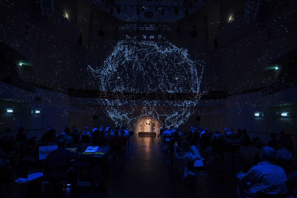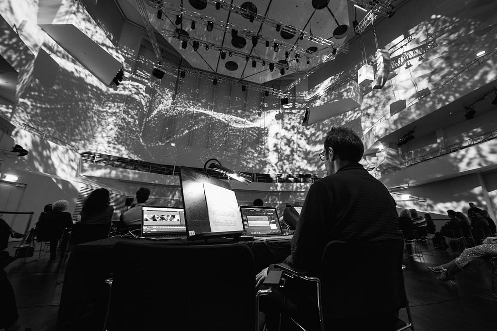 Visually, I was responsible for an abstract translation of the score, with sinuous figurative motifs referring to geological processes. This aesthetic never becomes demonstrative, not even when the fog machine is brought out. On the contrary, with the artistic team we managed to create immersive worlds with minimal resources. It is the use of generative video and sparse lighting that makes the effect unparalleled.