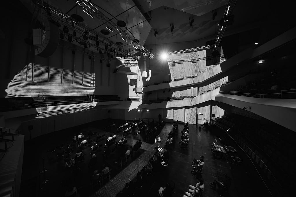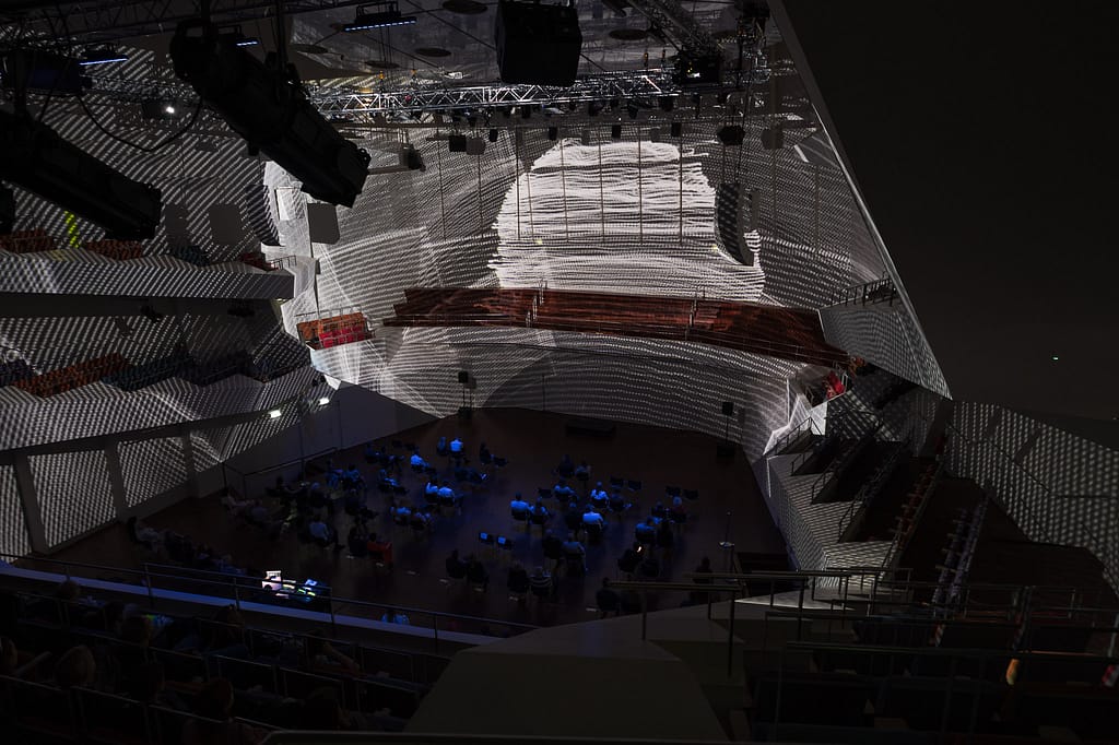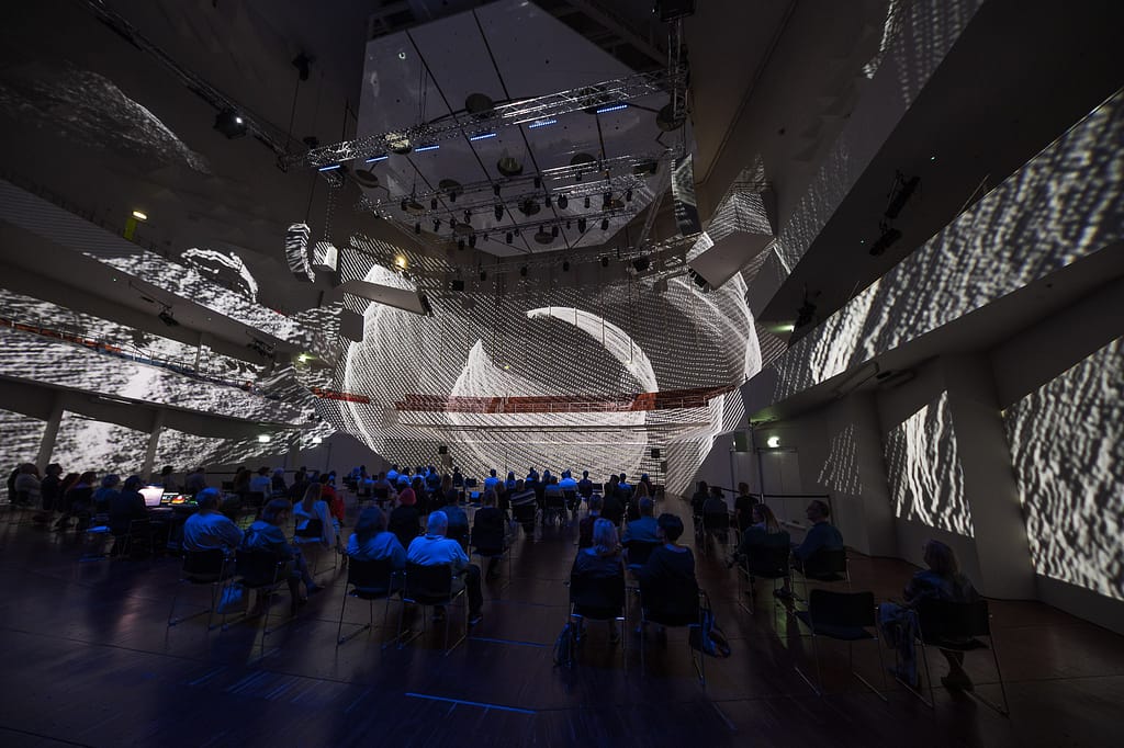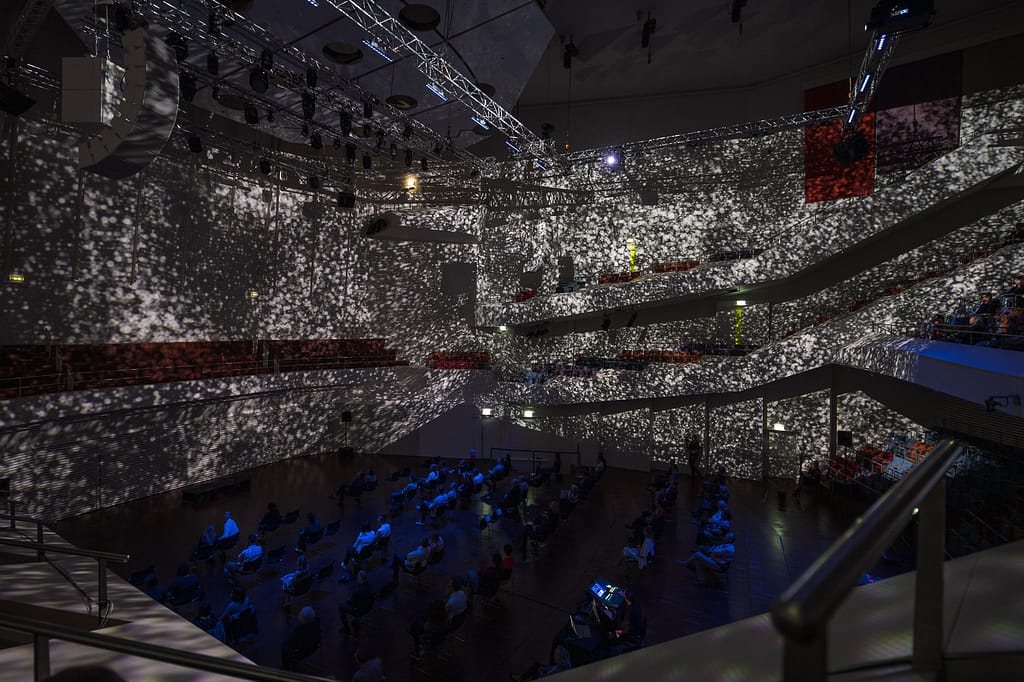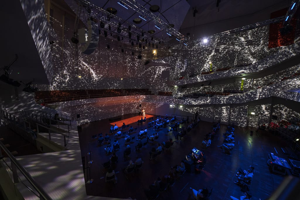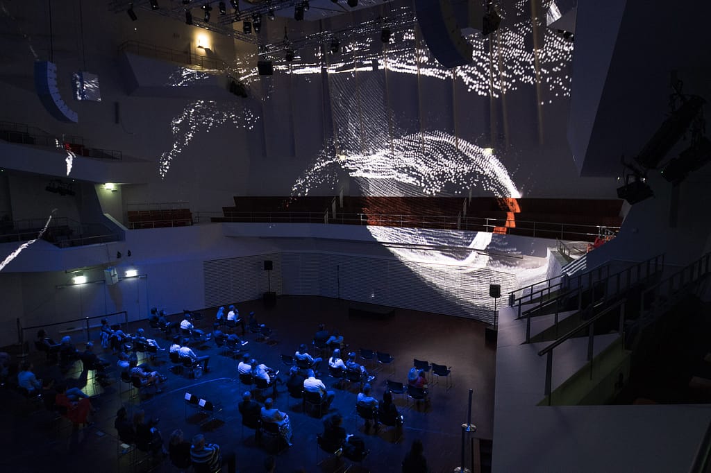 It should be pointed out how far Coppens and co dare push their alternative concert formula. The fusion of a soundscape, a dynamic score subject to democratic decision-making via an app and a sophisticated visual representation, additionally enriched with a narrative discourse through which the listener is willingly drawn into the music: there is no precedent of such an ambitious artistic adventure.